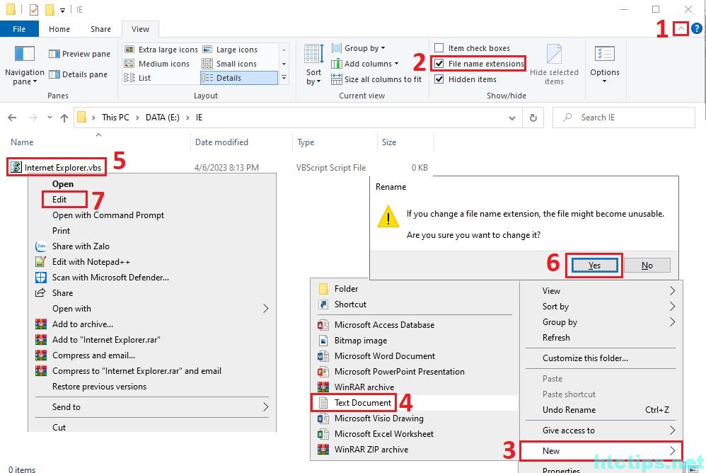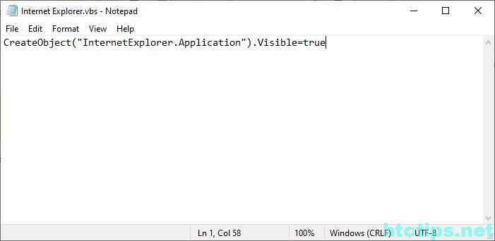 Tạo một tệp notepad và đổi tên thành Internet Explorer.vbs.
