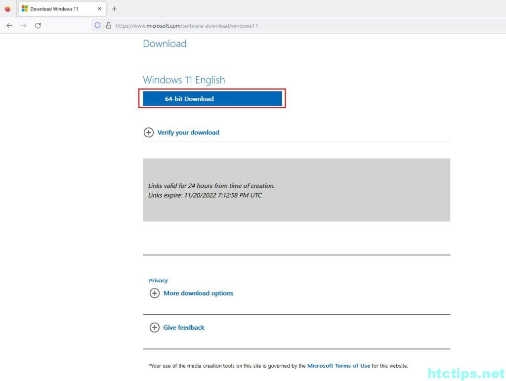 Đường dẫn tải Windows 11 có thời hạn là 24 tiếng kể từ lúc ấn Confirm.