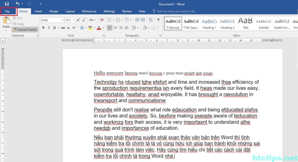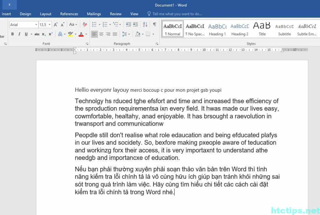 Lúc này Word sẽ không còn những đường đỏ phía dưới những chữ bị sai chính tả nữa.