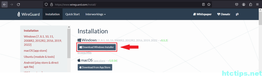 Truy cập trang web của Wireguard và tải Wireguard client.