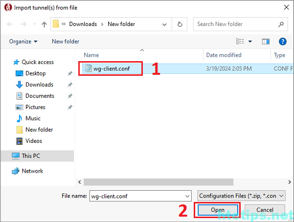 Chọn tệp cấu hình cho máy chủ WireGuard của bạn. Bạn sẽ có thể dễ dàng nhận ra nó từ phần mở rộng tệp “.conf”.