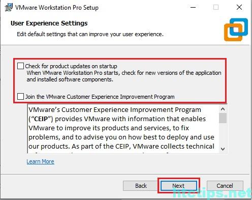 Bỏ đánh dấu Kiểm tra cập nhật và Tham gia cải thiện chương trình.