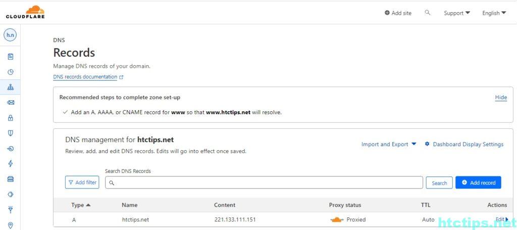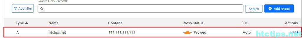 Quay lại, kiểm tra DNS Record trên Cloudflare sẽ nhìn thấy bị thay đổi sang địa chỉ IP mới.