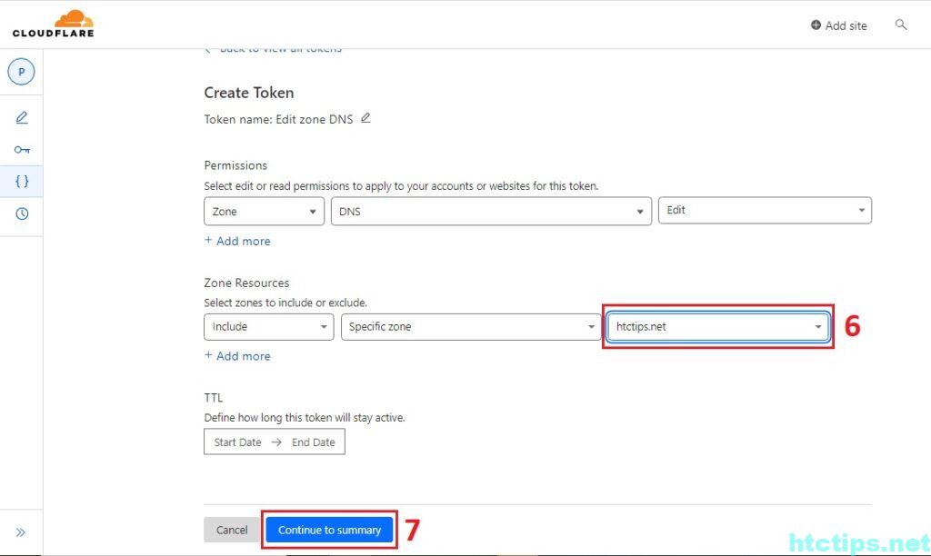 Chọn tên Miền ở mục Zone Resources > Continue to summary.