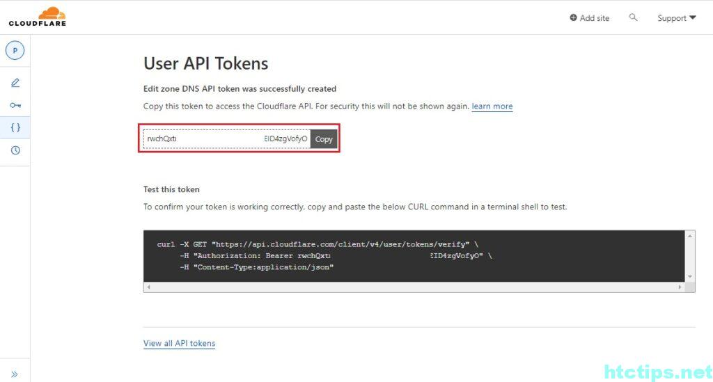 Token này chỉ xem được lúc vừa tạo xong và sẽ không thể xem lại trên Cloudflare vì bảo mật. Nếu mất Token thì phải tạo lại Token mới.