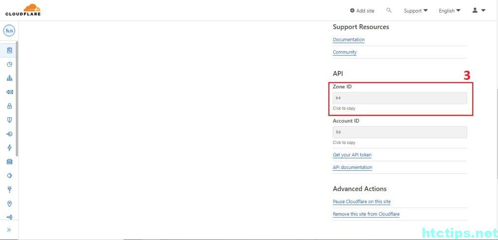 Cuộn xuống phía dưới, mục API. Lúc này, sao chép Zone ID và dán vào zone_identifier trong đoạn script.